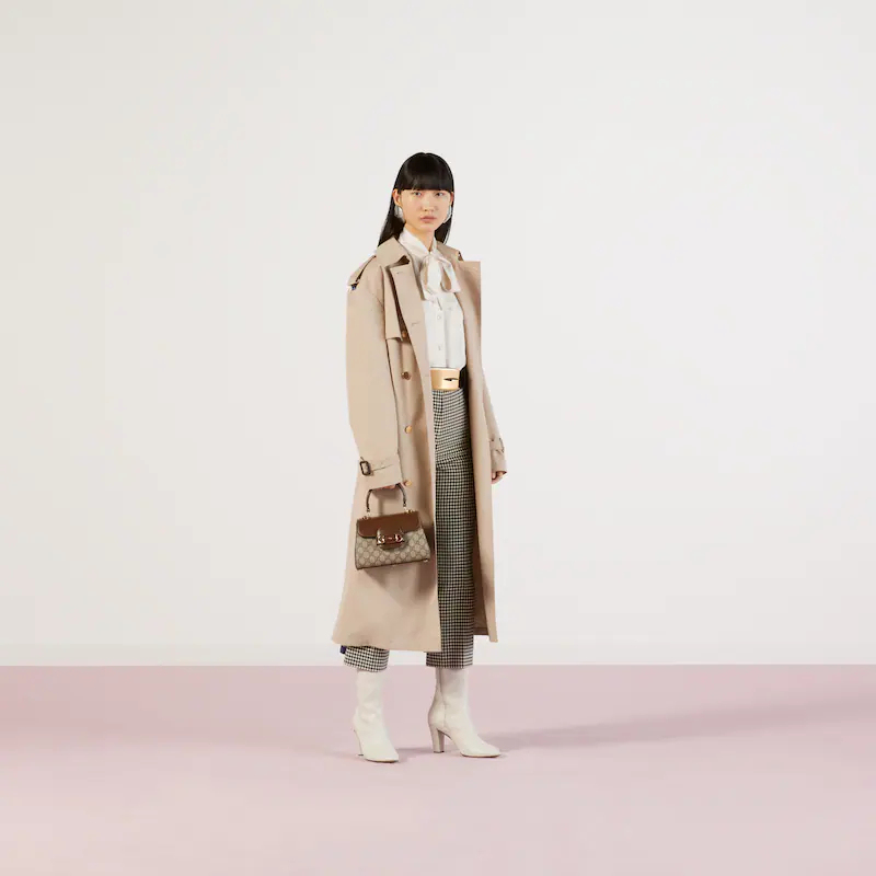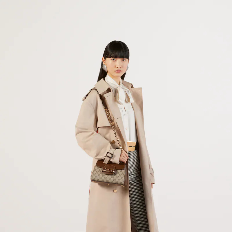 The Gucci Horsebit 1955 is presented as a top handle bag in light brown leather. The collection unifies details first introduced on the original bag that inspired the line from over six decades ago with a modern spirit, highlighting the Horsebit. Part of Gucci’s genetic code, the double ring and bar design has been established as one of the most distinctive elements among the House symbols borrowed from the equestrian world.